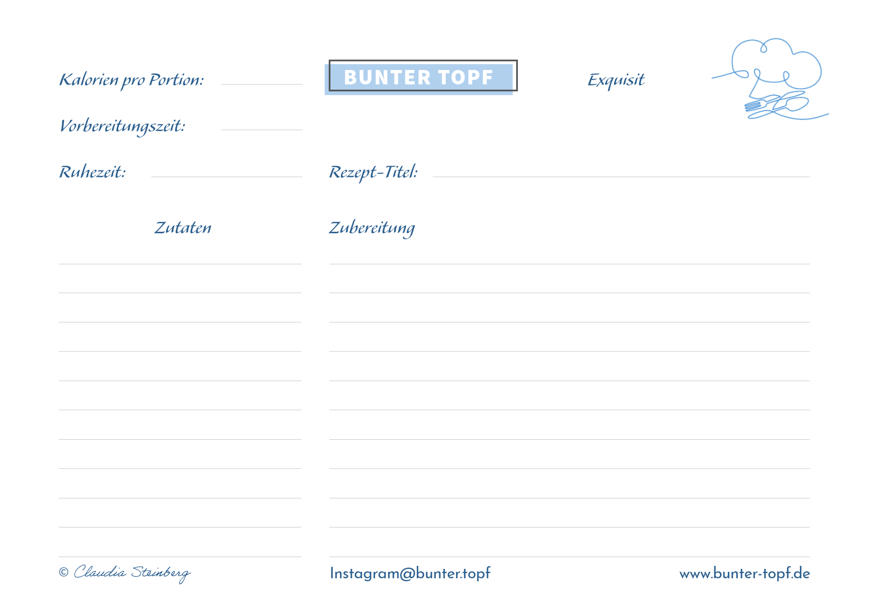 Rezeptkarte d-blau blanko Hauptgang