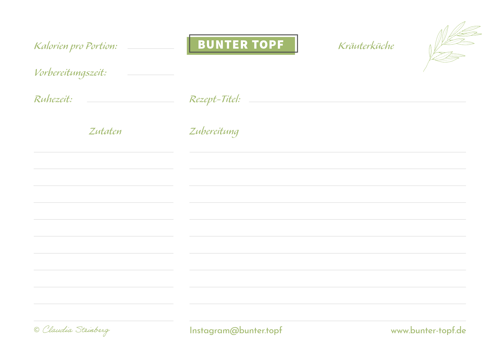 Rezeptkarte grün blanko Kräuterküche