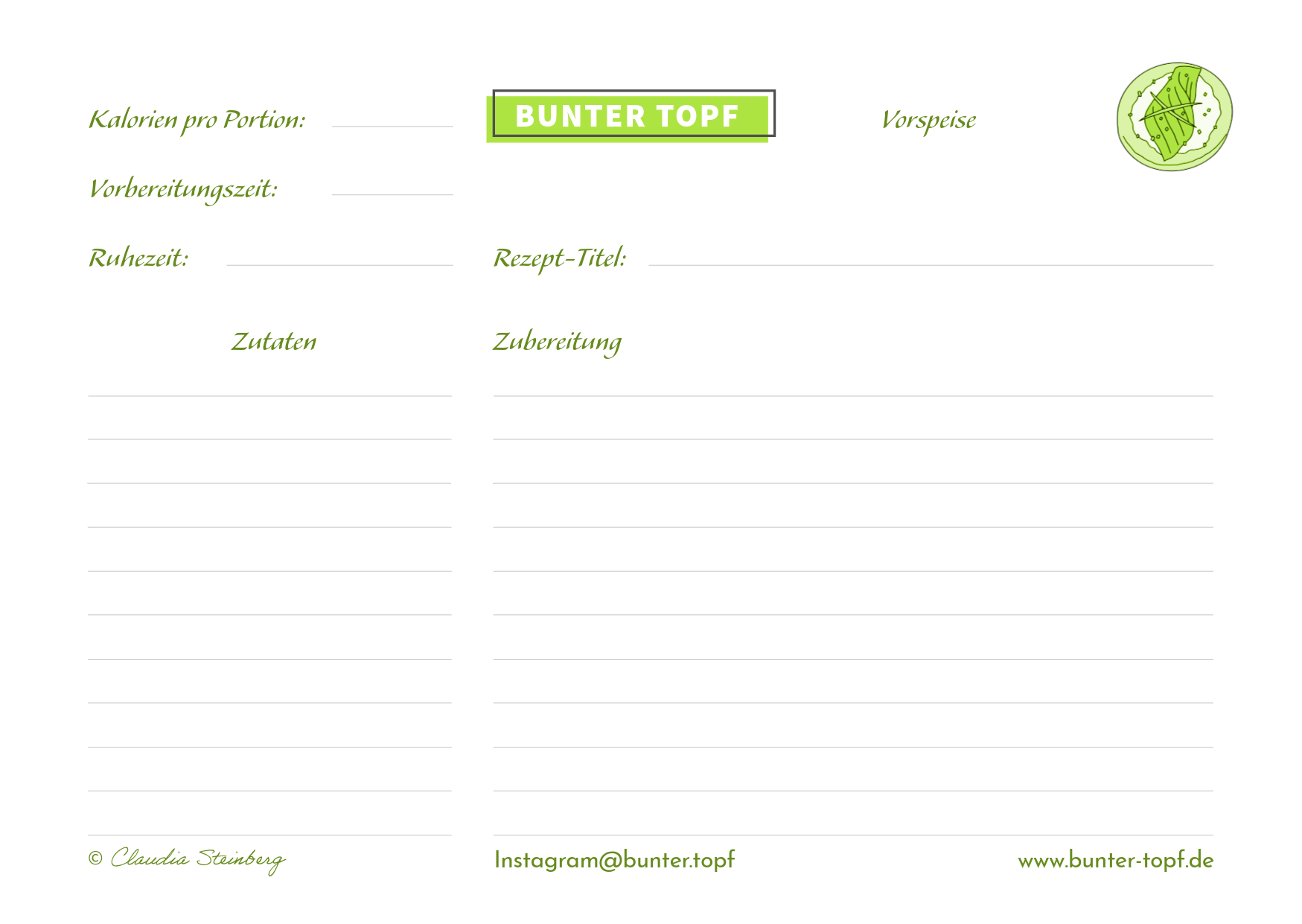 Rezeptkarte grün blanko Vorspeise