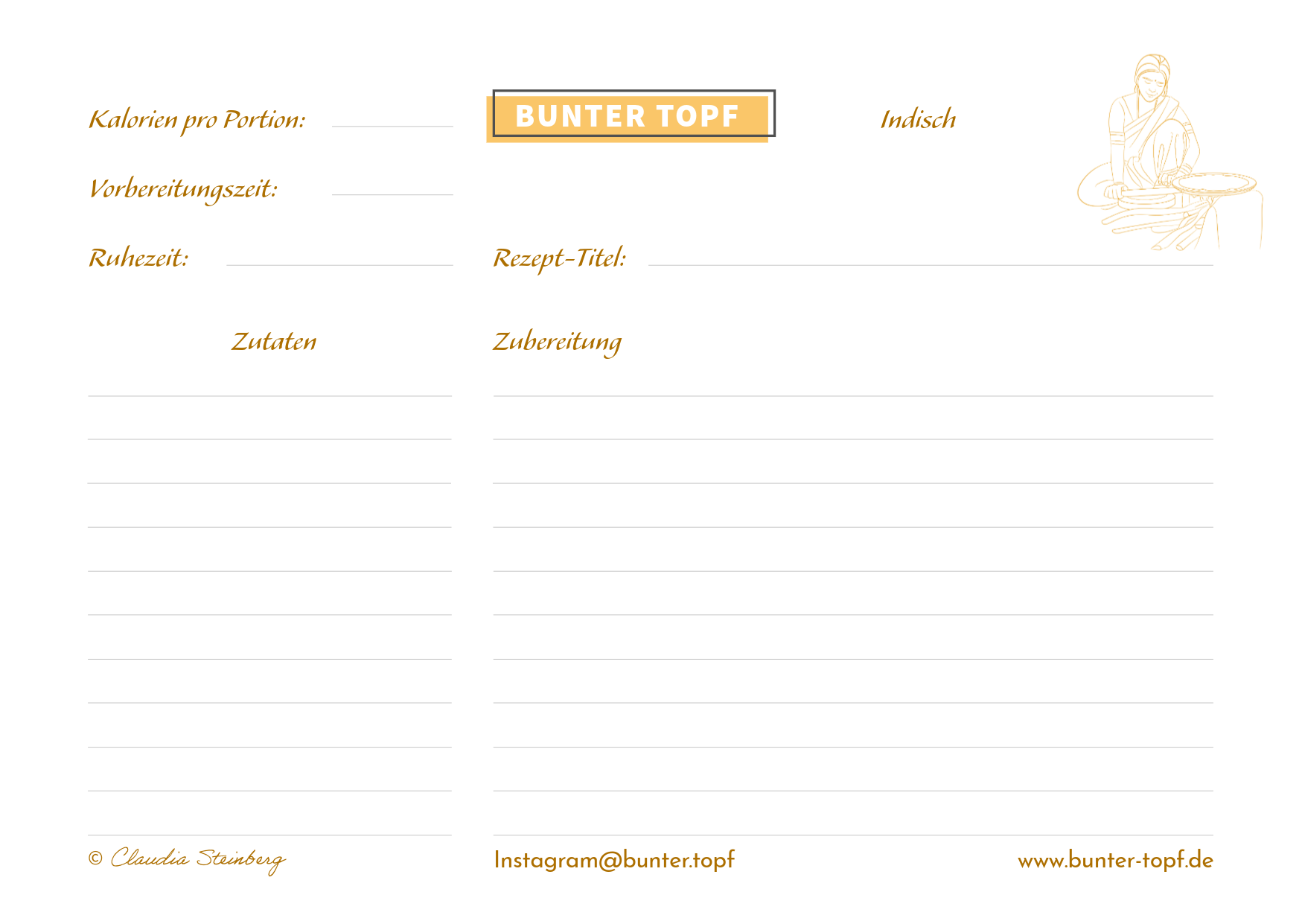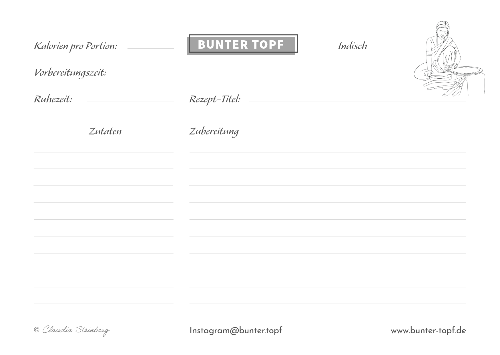 Rezeptkarte schwarz/weiß blanko Indisch