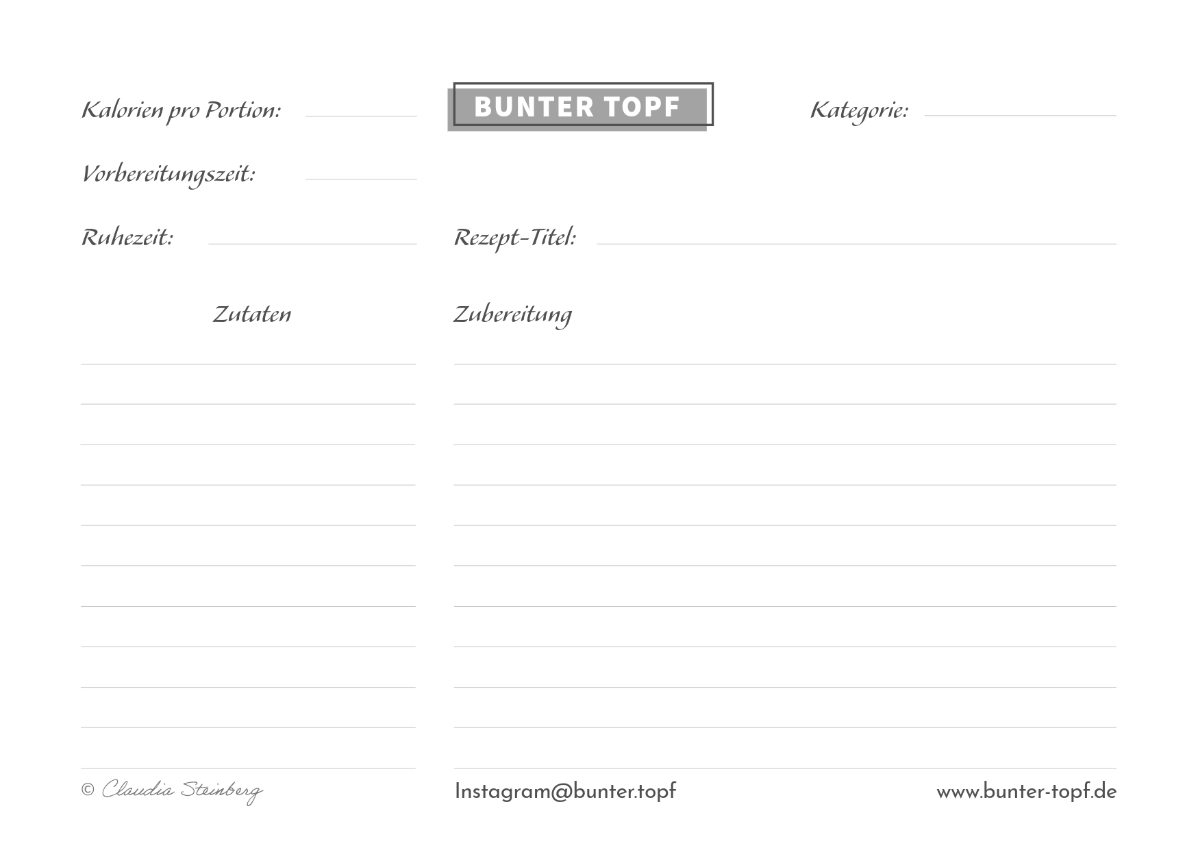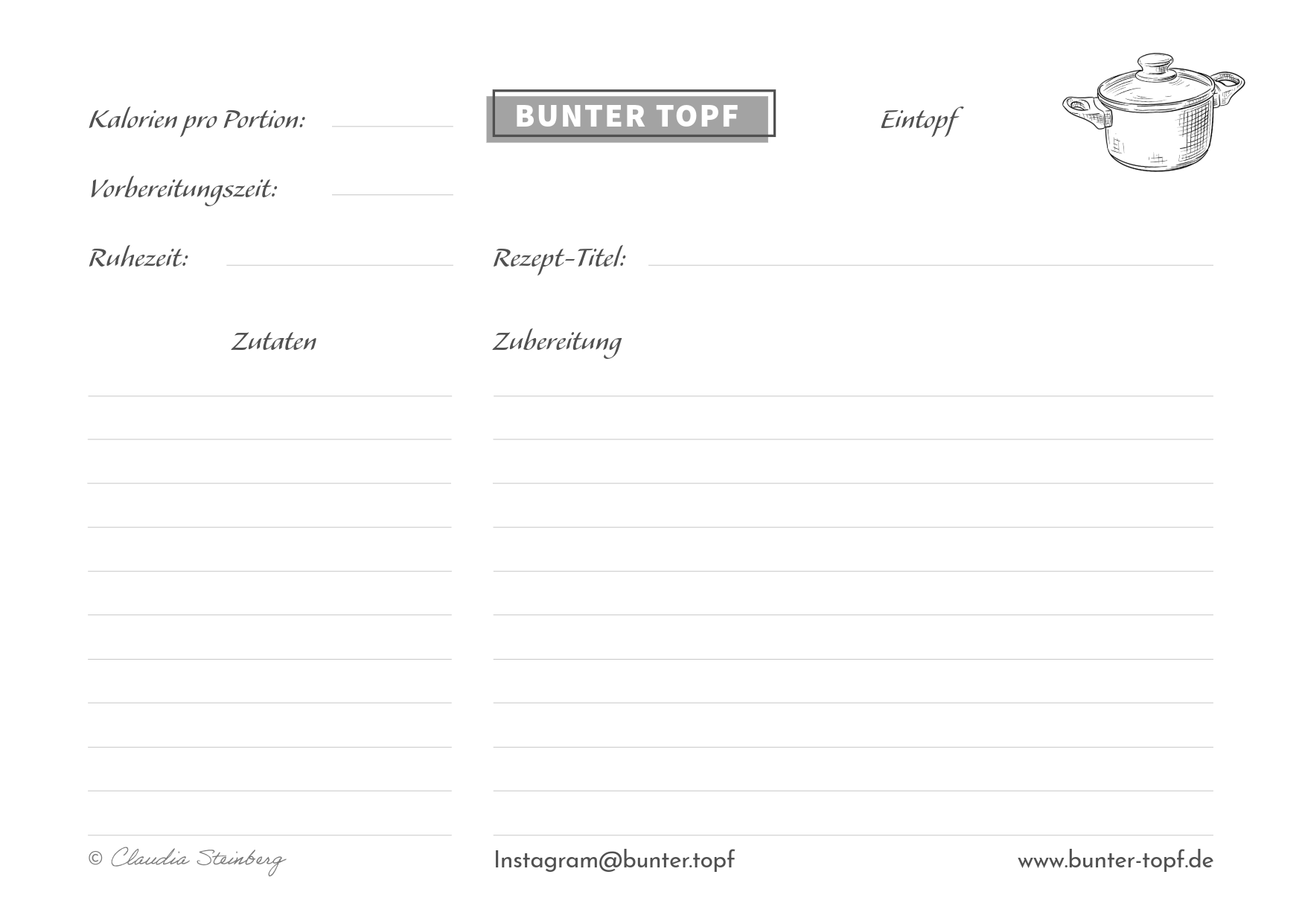 Rezeptkarte schwarz/weiß blanko Eintopf