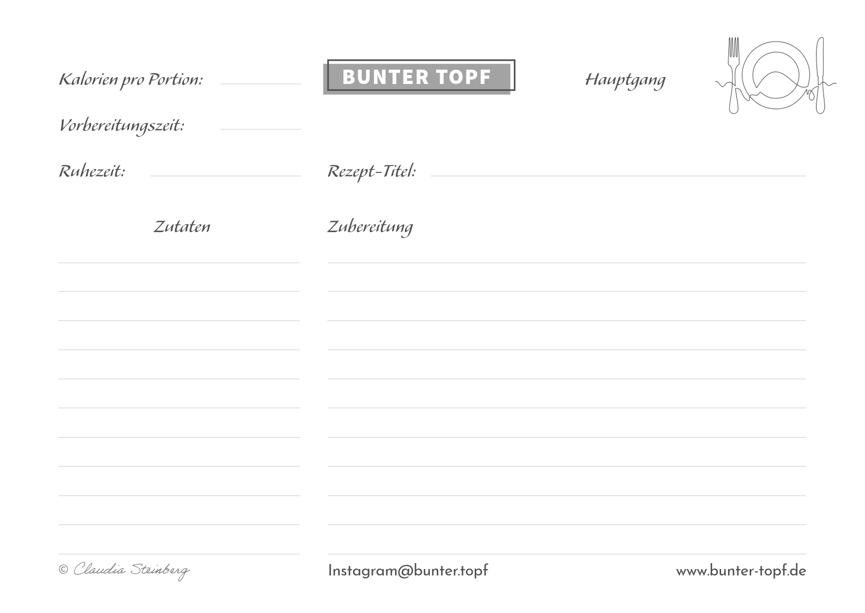Rezeptkarte schwarz/weiß blanko Hauptgang