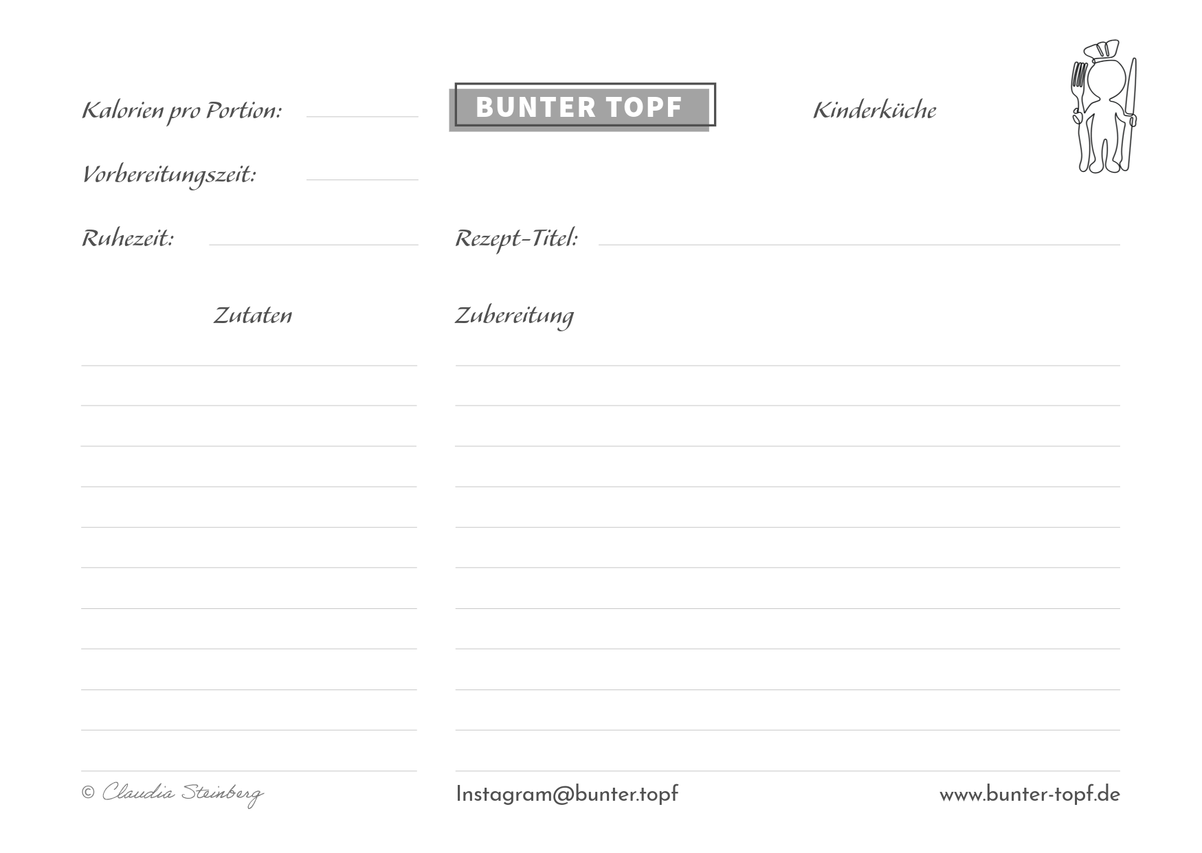 Rezeptkarte schwarz/weiß blanko Kinderküche