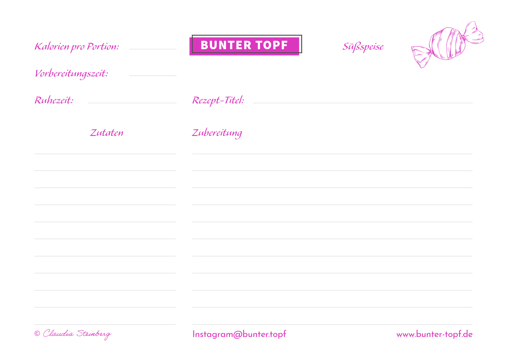 Rezeptkarte pink blanko Dessert